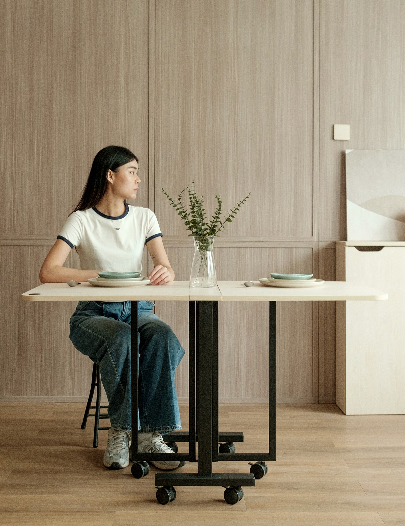 Ya. Berdasarkan model, produk TADA bisa berfungsi sebagai meja kerja, meja makan, meja rias, atau meja dengan kompartemen penyimpanan. Seluruhnya dirancang dengan konsep hemat ruang untuk penggunaan harian.